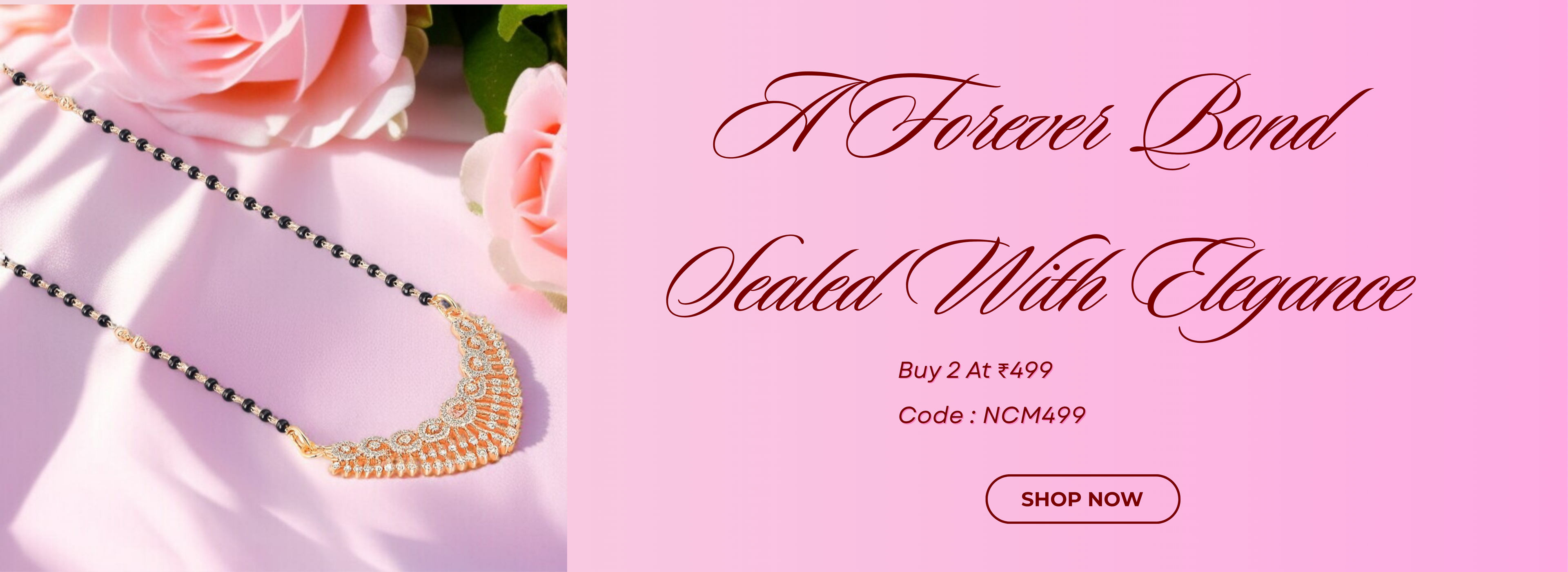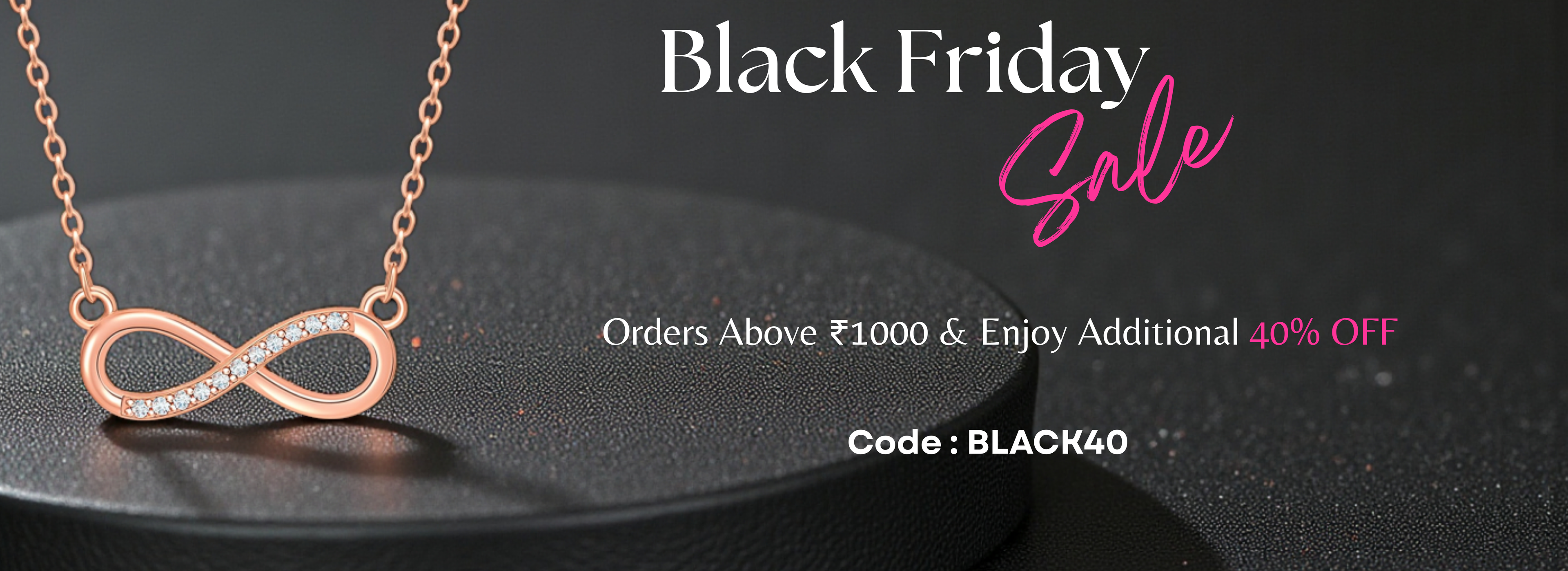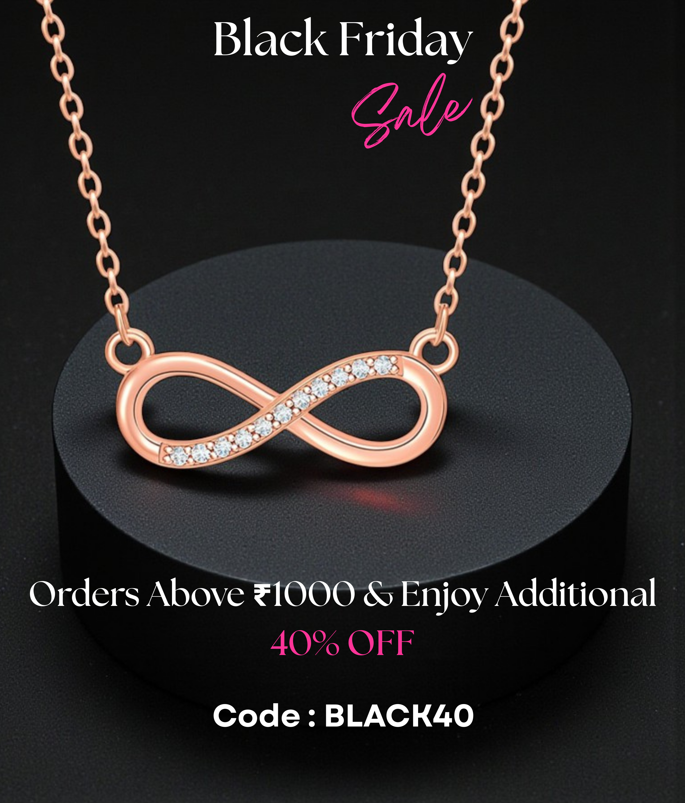 Mangalsutra Necklace with Infinity Heart Pendant| Black Beads Chain| Rose Gold Plated