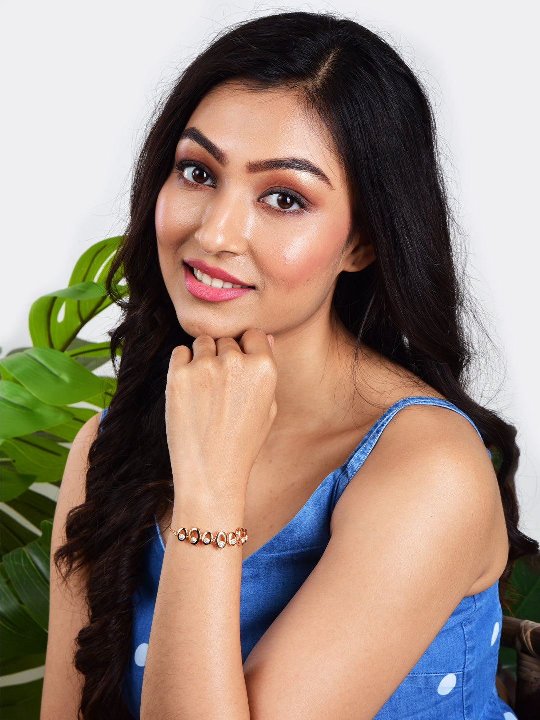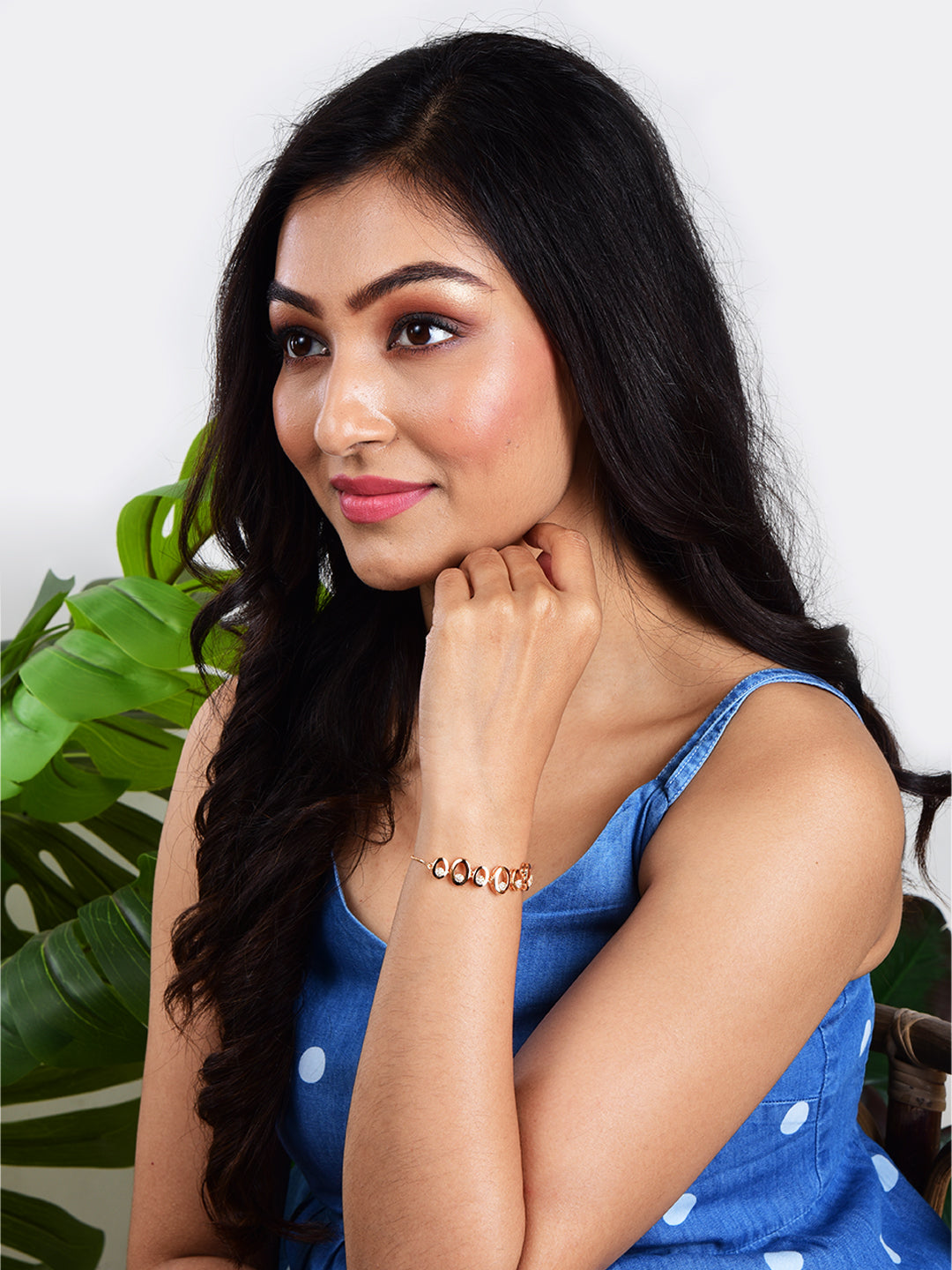 Regular price Rs. 1,385.00 Sale price Rs. 349.00Rose Gold Plated AD Stone Bracelets for Women and Girls, Stylish Adjustable Alloy Bracelet, Birthday Anniversary and Valentine Gift