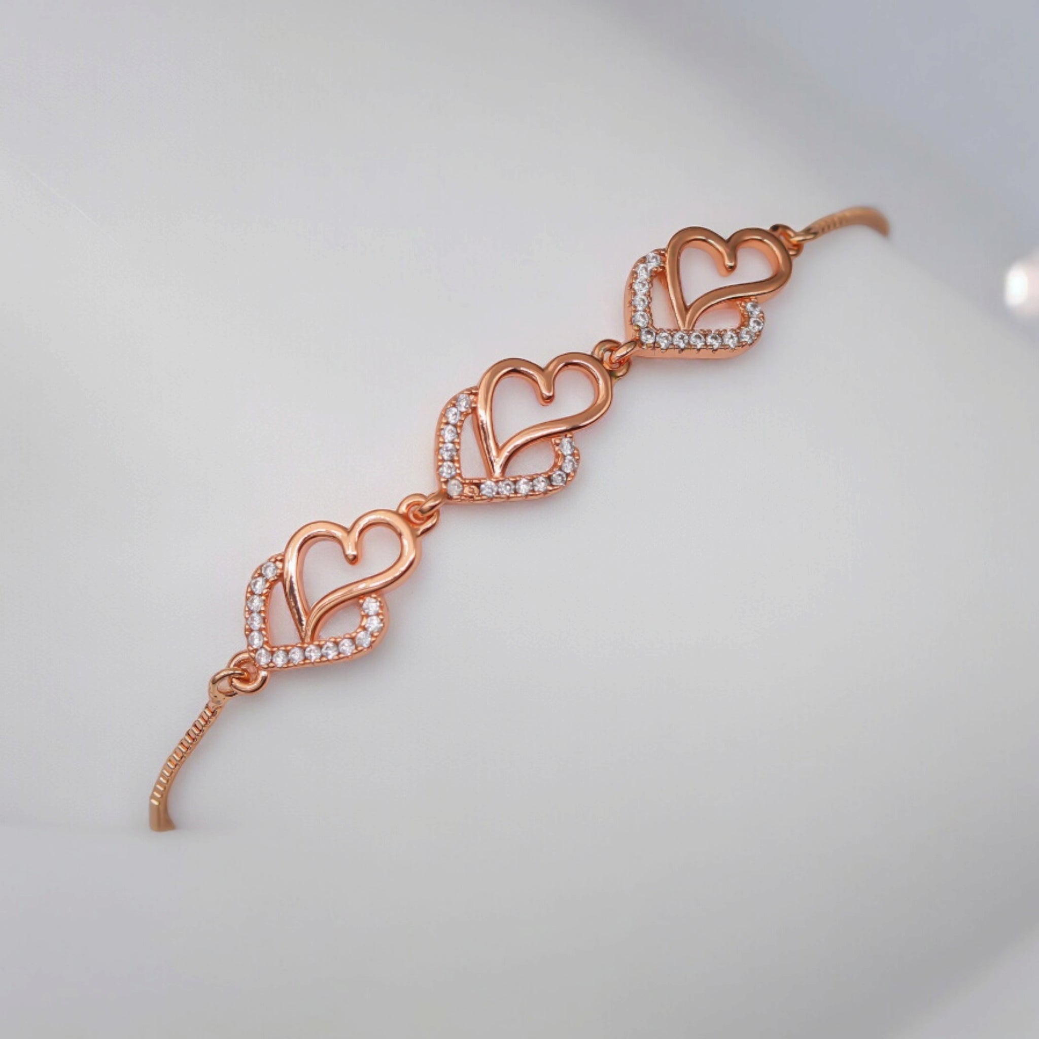 AD Studded Heart Shape Bracelet for Women, Stylish Rose Gold Plated Adjustable Bracelet, Valentine Gift for Girls AD Studded Heart Shape Bracelet for Women, Stylish Rose Gold Plated Adjustable Bracelet, Valentine Gift for Girls