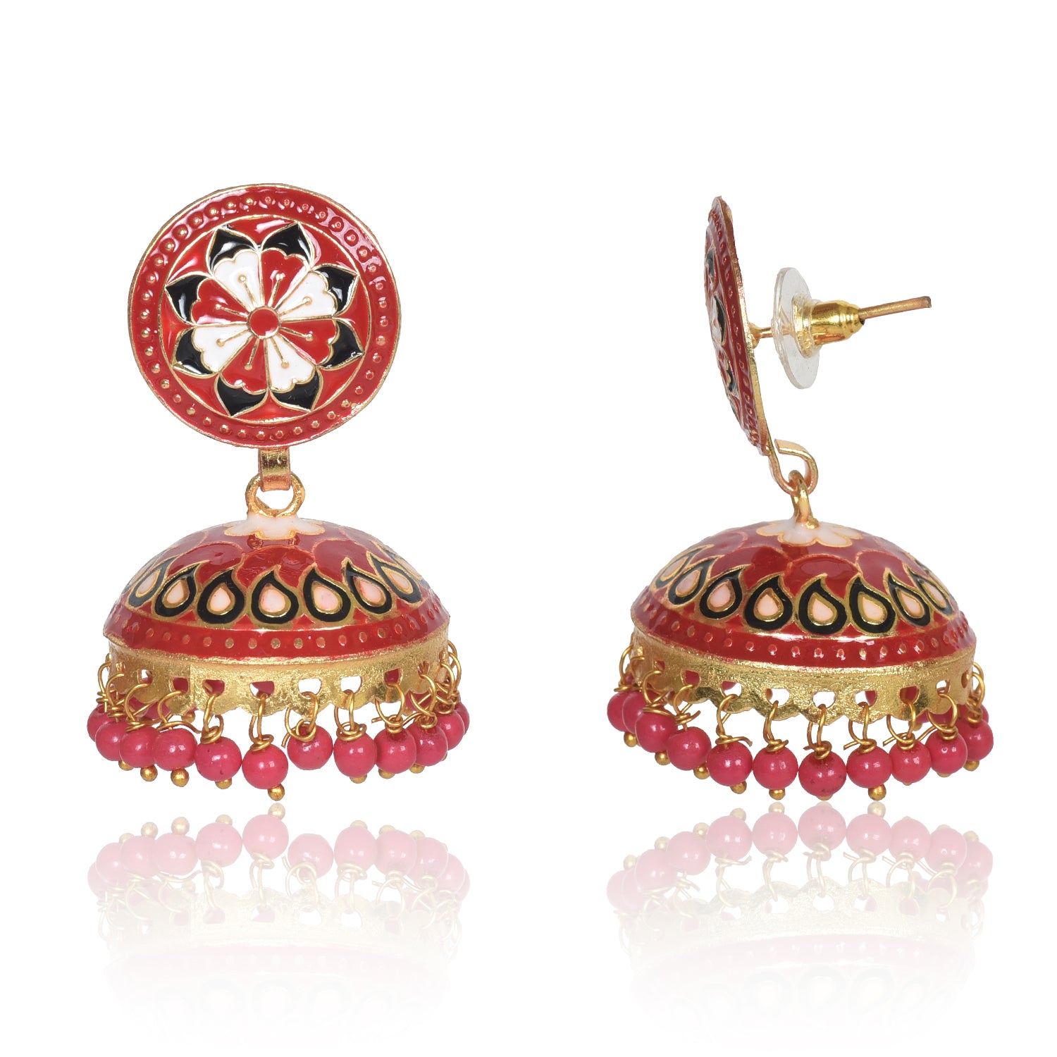 Meenakari Dome Shape Multicolour Lightweight Brass Jhumka for Women & Girls Meenakari Dome Shape Multicolour Lightweight Brass Jhumka for Women & Girls