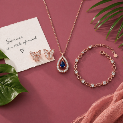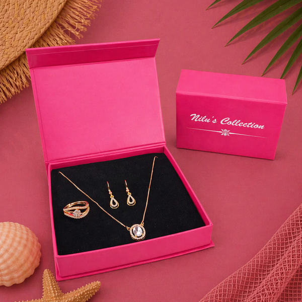 Harmony Hues Value Set| Rose Gold Jewellery Set Elegant Necklace, Earrings & Ring for Women & Girls