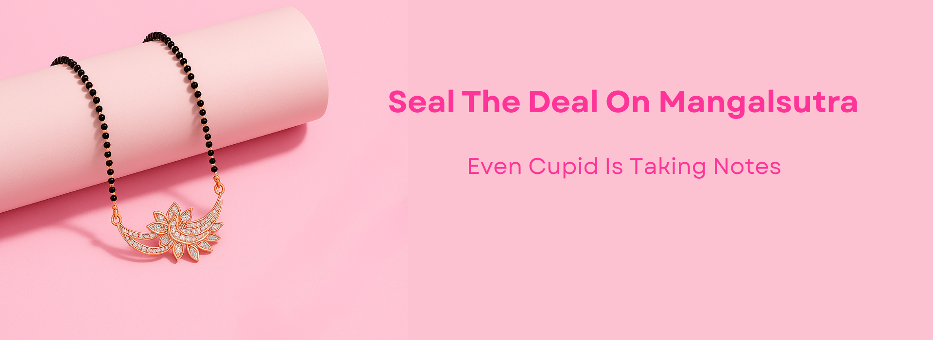 Mangalsutra Necklace with Infinity Heart Pendant| Black Beads Chain| Rose Gold Plated