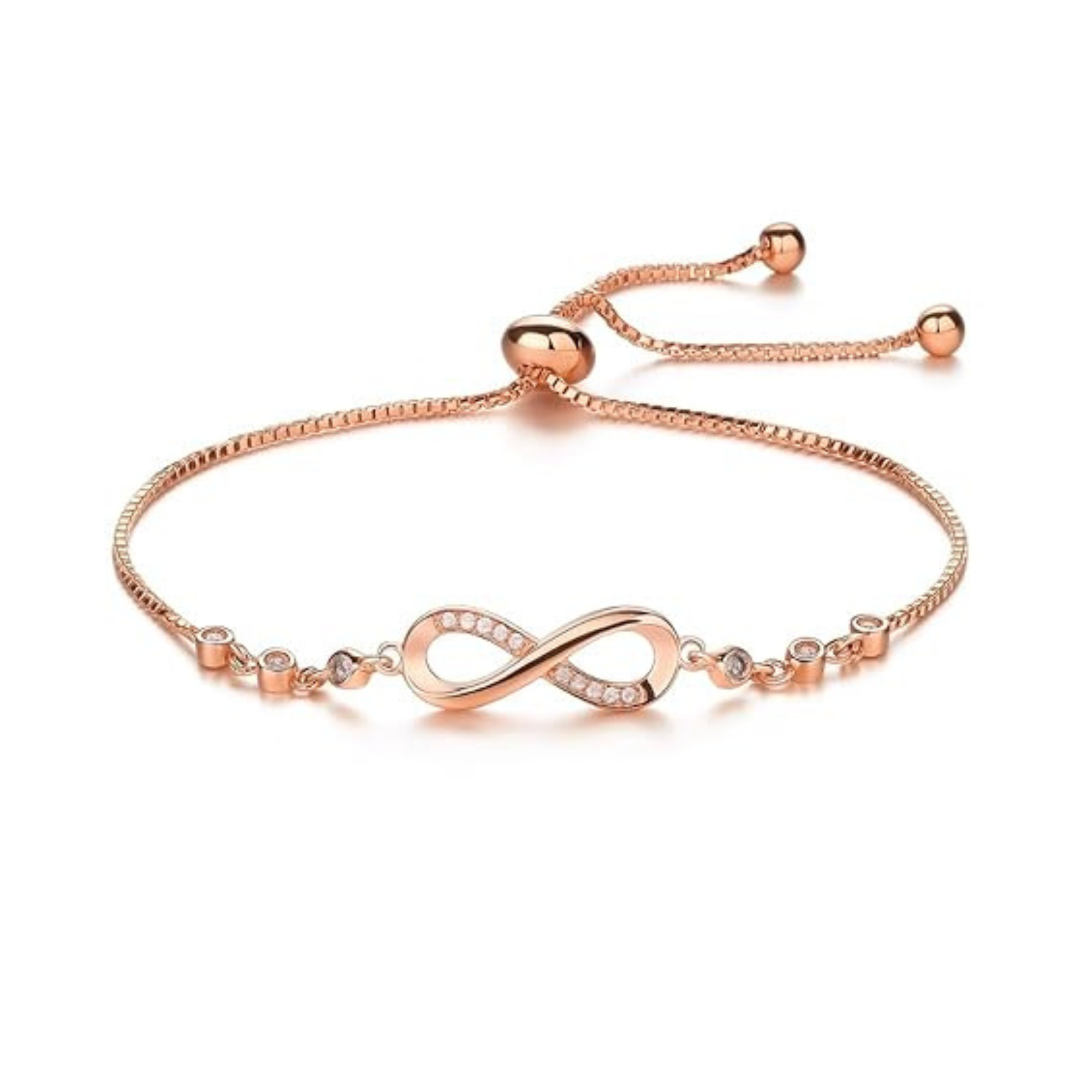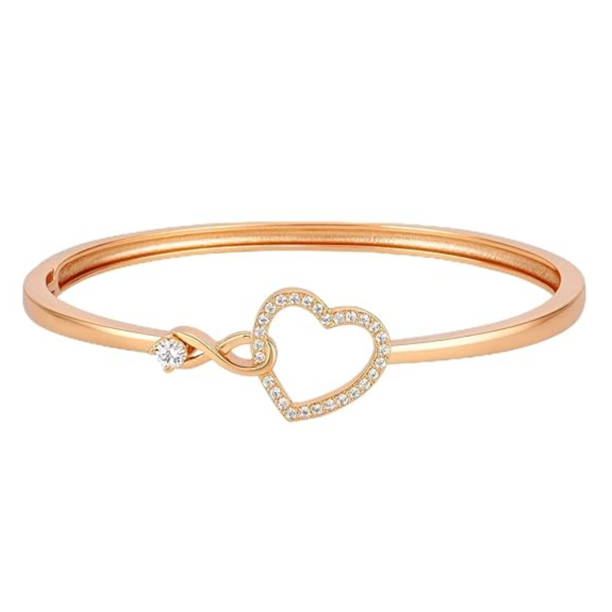 Rose Gold Plated Adjustable Infinity Heart Bracelet with American Diamonds for Women & Girls