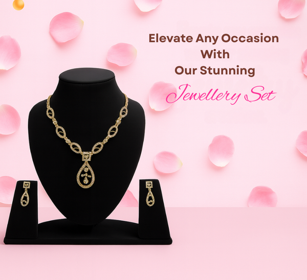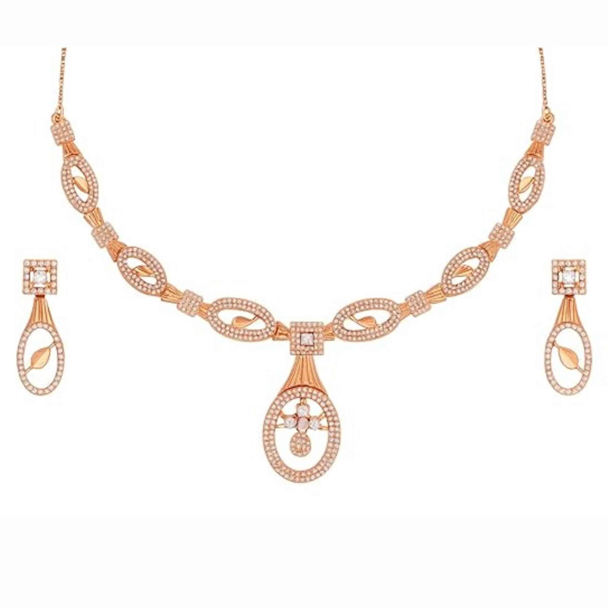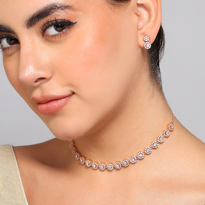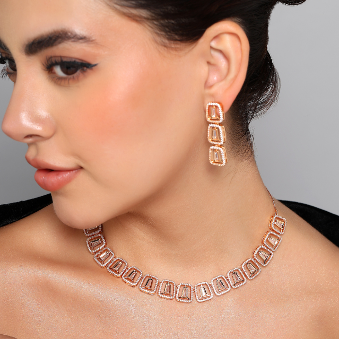 Gift Elegant Rose Gold Jewelry Set for Women – Necklace, Earrings & Bracelet with Sparkling AD Stones, Perfect Gift for Weddings,Functions & Anniversaries