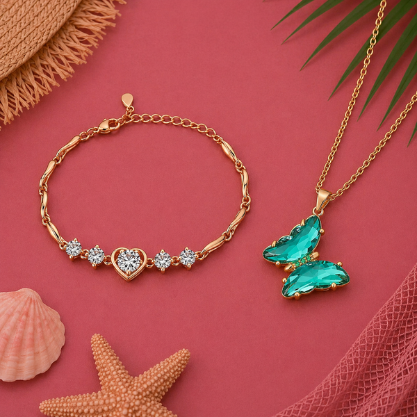 Harmony Hues Value Set | Rose Gold Plated Heart Necklace and Kada Bracelet for Women & Girls