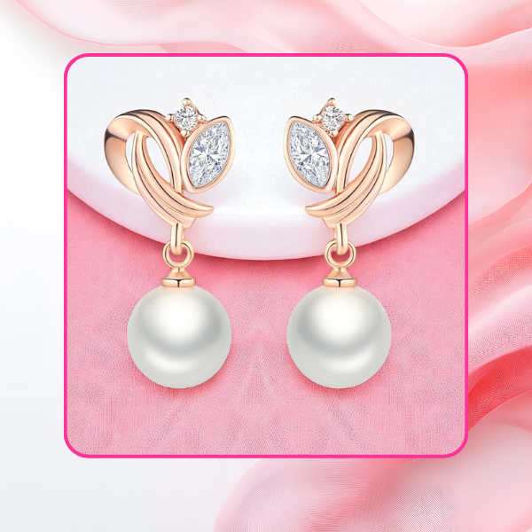Pearl Pop Rose Gold Plated Drop Earrings For Girls| Value Set Jewellery