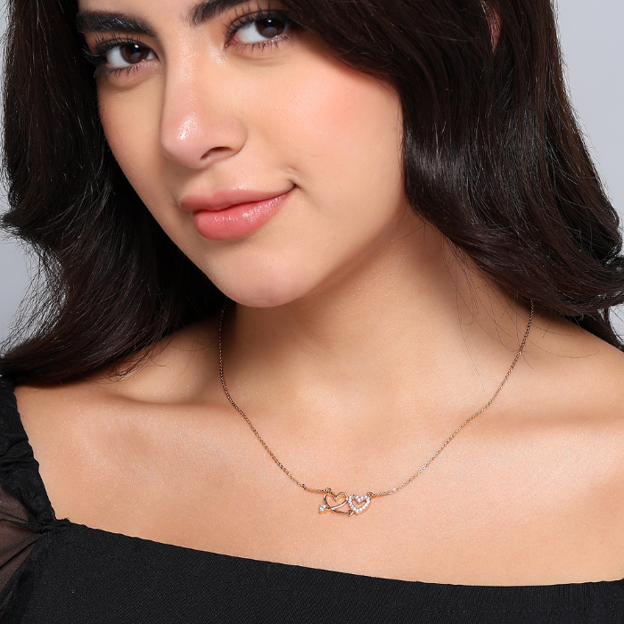 Silver Plated Double Heart Pendant Necklace for Women And Girls