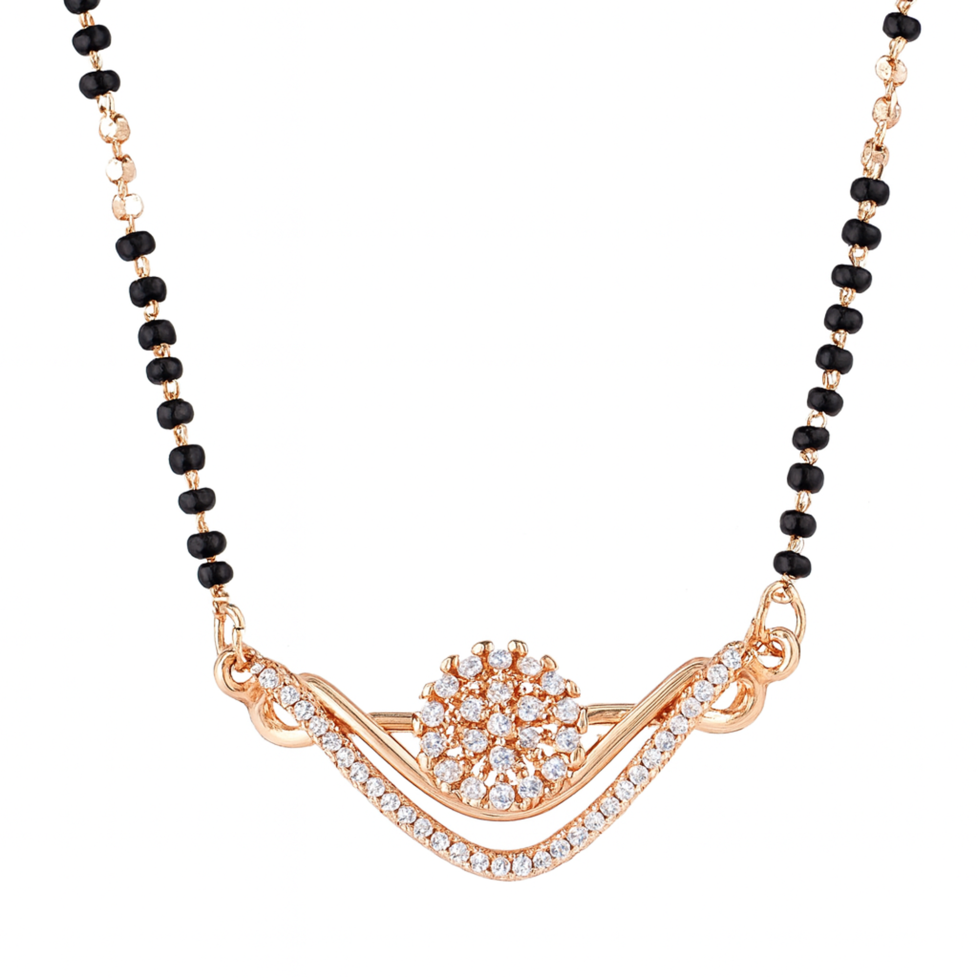 Nilu's Collection Rose Gold Plated CZ Stones Floral Mangalsutra With Black Beads For Women
